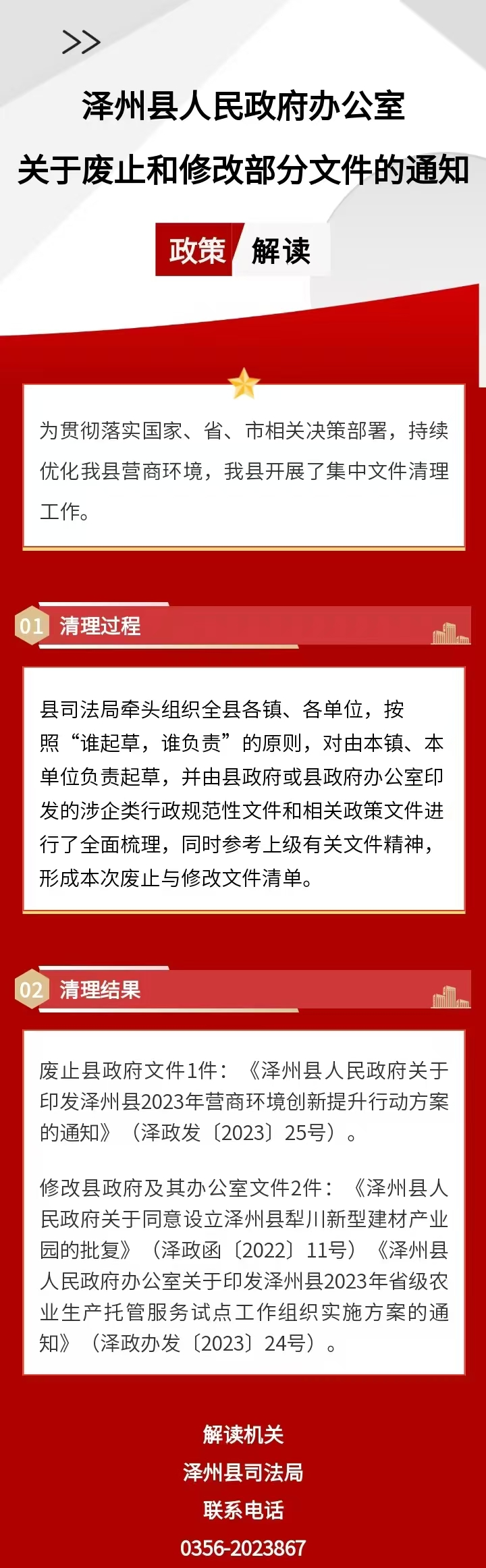 《澤州縣人民政府辦公室關于廢止和修改部分文件的通知》政策解讀