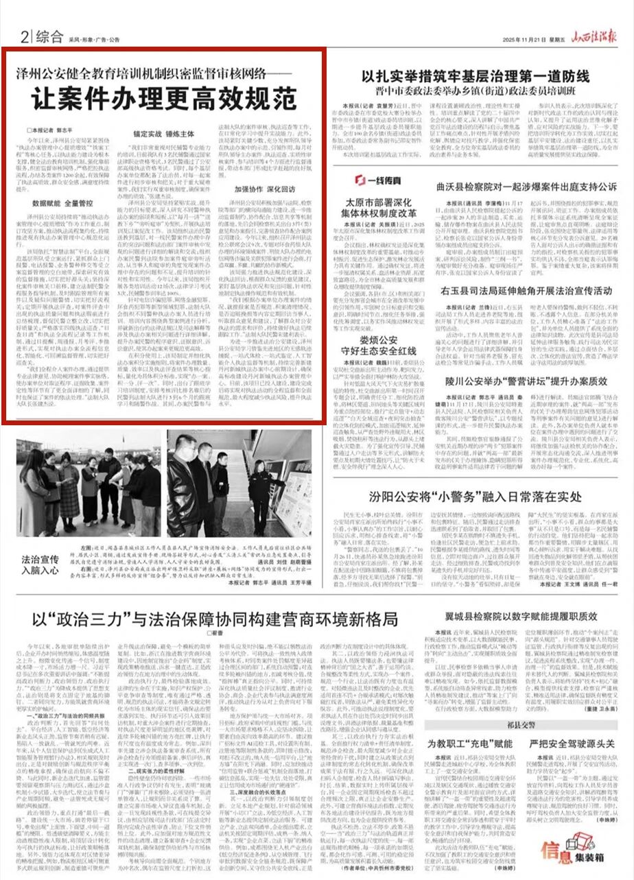 山西法治報(bào):澤州公安健全教育培訓(xùn)機(jī)制織密監(jiān)督審核網(wǎng)絡(luò)——讓案件辦理更高效規(guī)范